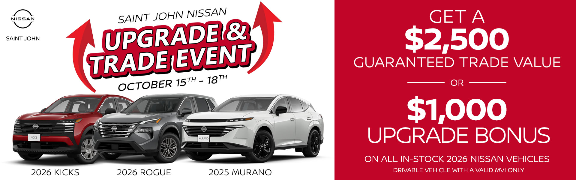 And that's not all: Saint John Nissan can help you save big on your next major purchase with our flexible, low-interest financing and leasing options that are often combined with incredible incentives and special offers. If you are a Nissan owner, come in today to Saint John Nissan for all of your after-sales service needs. We offer everything from a simple oil change to genuine Nissan parts and accessories, as well as a full menu of detailing packages. You will always be treated with a smile when you come to Saint John Nissan. To learn more about our new Nissan models as well as our range of after-sales service options, contact us today at 1 844 688-1041, or online using our contact form!